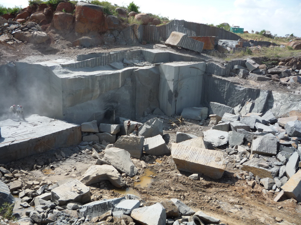 원석광산은 노천채굴로 광산의 지역의 지형과 암석층의 구조에 따라 석재의 품질이 결정됩니다